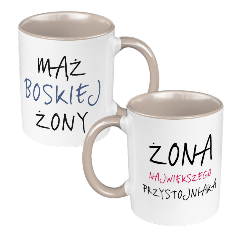Zestaw Kubków z nadrukiem (sublimacja). Idealny na prezent ślubny, bądź nagrodę w zabawach oczepinowych.